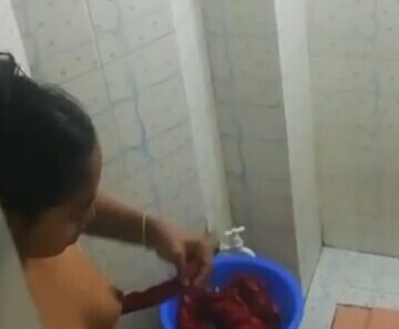 Young bangla girl bathing rubbing boobs